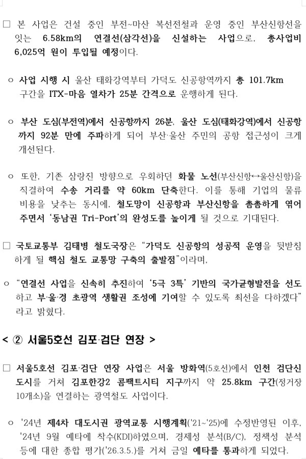 가덕도 신공항철도 연결선, 서울5호선 김포 · 검단 연장 및 위례신사선 도시철도 ‘예타 통과’