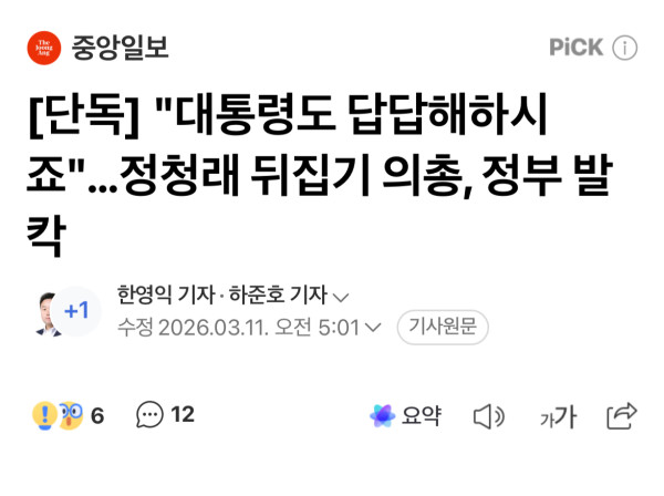중앙일보 단독기사 뜸