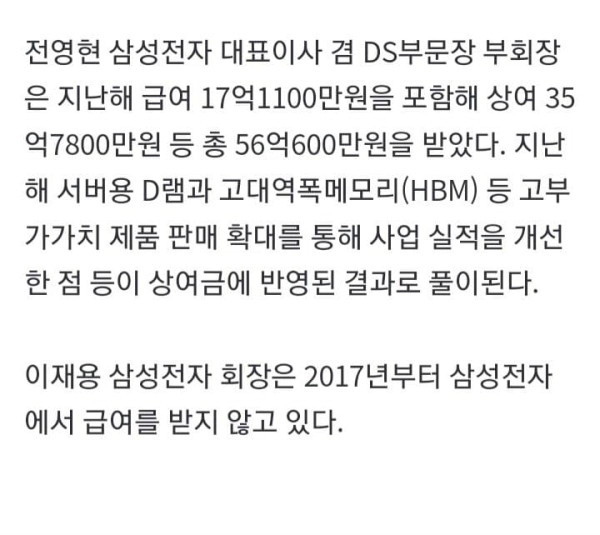 삼성 직원 작년 평균 연봉 1.58억 ‘역대 최고’…노태문 61억·전영현 56억원