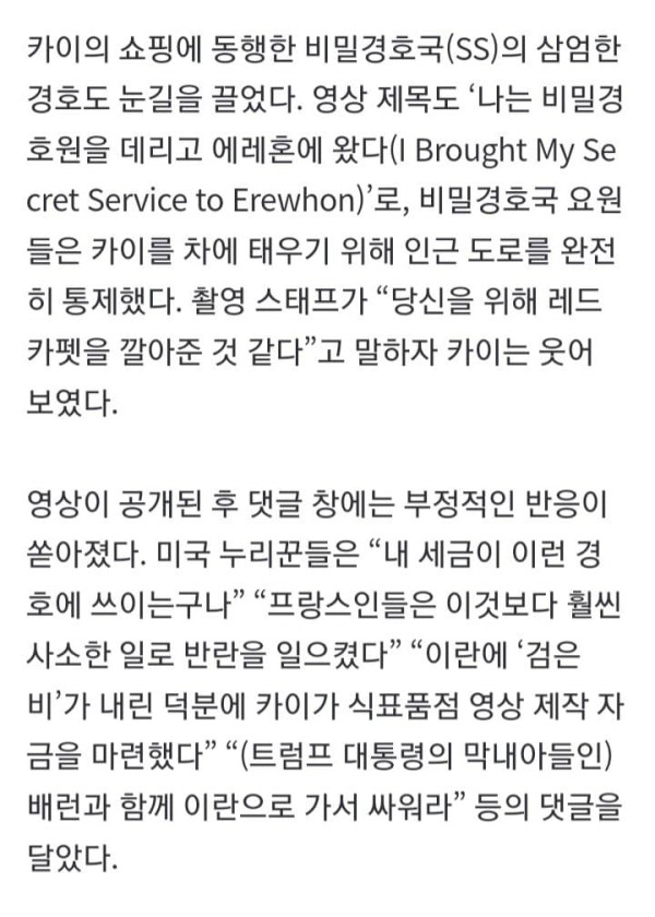 도널드 트럼프 미국 대통령의 손녀인 카이 트럼프(18)가 로스앤젤레스(LA)에 있는 초고가 마트에서 쇼핑하는 모습을 유튜브에 공개했다. 일각에선 미국과 이스라엘의 이란 공습 이후 중동 지역의 정세 불안이 지속되는 가