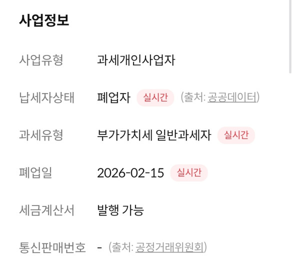 인터넷 찾아보면 대표자 구승○는 이미 2월 15일 폐업을 한 상태