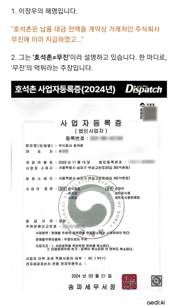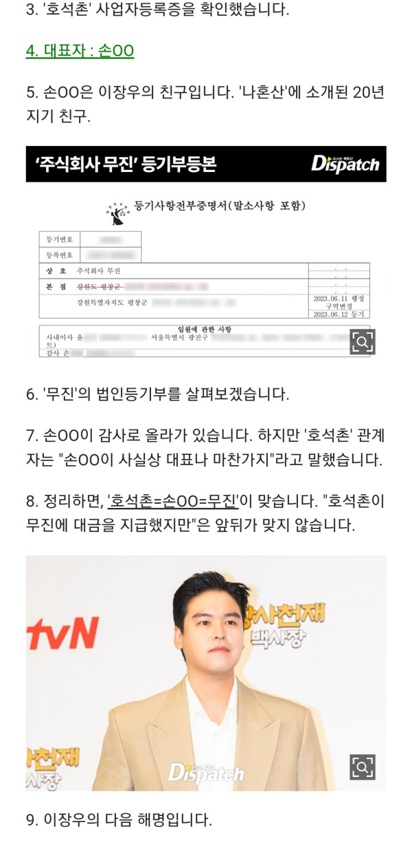 디스패치 이장우 미수금 2차 폭로 터졌다