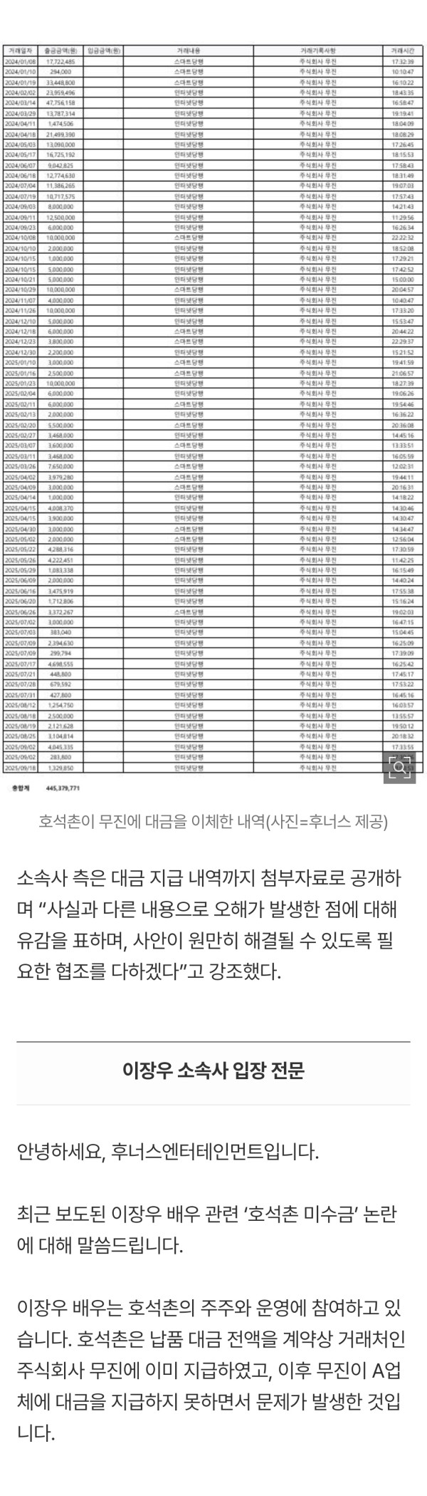 이장우, 미수금 논란에 이체 내역 공개, 디스패치 2차 폭로