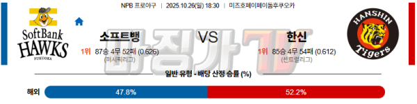 2025-10-26 NPB 소프트뱅크 한신 KBO/NPB분석 무료중계 스포츠분석