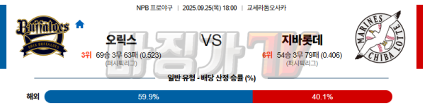 2025-09-25 NPB 오릭스 지바롯데 KBO/NPB분석 무료중계 스포츠분석