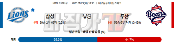 2025-09-23 KBO 삼성 두산 KBO/NPB분석 무료중계 스포츠분석