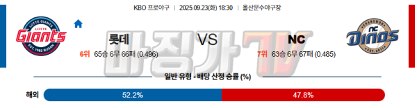 2025-09-23 KBO 롯데 NC KBO/NPB분석 무료중계 스포츠분석