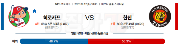 2025-09-17 NPB 히로시마 한신 KBO/NPB분석 무료중계 스포츠분석