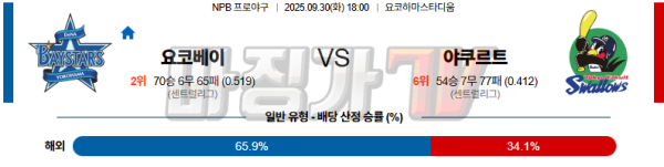 2025-09-30 NPB 요코하마 야쿠르트 KBO/NPB분석 무료중계 스포츠분석