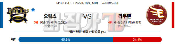 2025-09-28 NPB 오릭스 라쿠텐 KBO/NPB분석 무료중계 스포츠분석