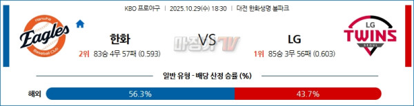 2025-10-29 KBO 한화 LG KBO/NPB분석 무료중계 스포츠분석