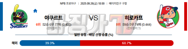 2025-09-26 NPB 야쿠르트 히로시마 KBO/NPB분석 무료중계 스포츠분석