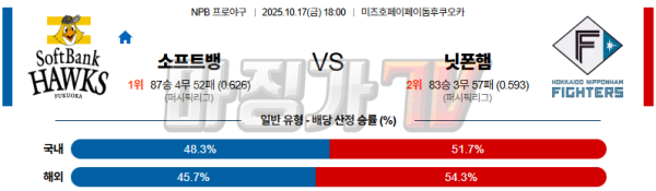 2025-10-17 NPB 소프트뱅크 니혼햄 KBO/NPB분석 무료중계 스포츠분석