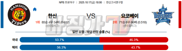 2025-10-17 NPB 한신 요코하마 KBO/NPB분석 무료중계 스포츠분석