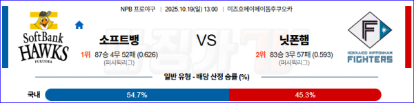 2025-10-19 NPB 소프트뱅크 니혼햄 KBO/NPB분석 무료중계 스포츠분석