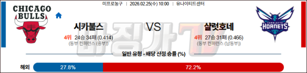 2026-02-25 NBA 시카고 불스 샬럿 호네츠 NBA분석 무료중계 스포츠분석