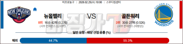 2026-02-25 NBA 뉴올리언스 펠린컨즈 골든스테이트 워리어스 NBA분석 무료중계 스포츠분석