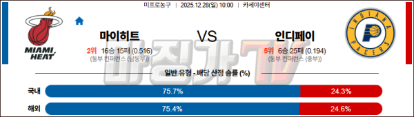 2025-12-28 NBA 마이애미 히트 인디애나 페이서스 NBA분석 무료중계 스포츠분석