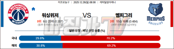 2025-12-29 NBA 워싱턴 위자드 멤피스 그리즐리즈 NBA분석 무료중계 스포츠분석