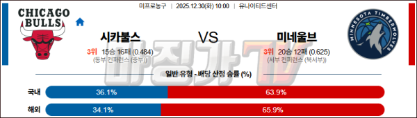 2025-12-30 NBA 시카고 불스 미네소타 울브스 NBA분석 무료중계 스포츠분석