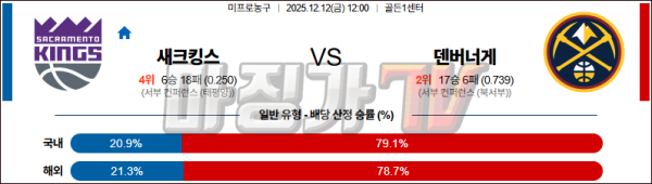 2025-12-12 NBA 새크라멘토 킹스 덴버 너겟츠 NBA분석 무료중계 스포츠분석