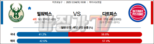 2025-12-04 NBA 밀워키 벅스 디트로이트 피스톤스 NBA분석 무료중계 스포츠분석