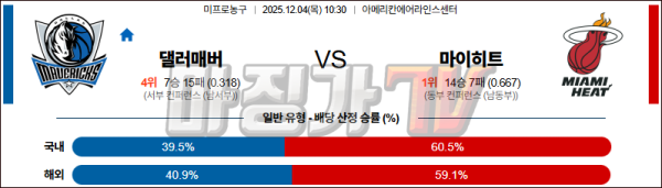 2025-12-04 NBA 댈러스 매버릭스 마이애미 히트 NBA분석 무료중계 스포츠분석