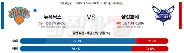 2025-12-04 NBA 뉴욕 닉스 샬럿 호네츠 NBA분석 무료중계 스포츠분석