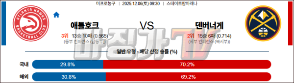 2525-12-06 NBA 애틀랜타 호크스 덴버 너겟츠 NBA분석 무료중계 스포츠분석