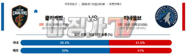 2026-01-11 NBA 클리블랜드 캐벌리어스 미네소타 울브스 NBA분석 무료중계 스포츠분석