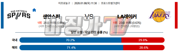 2026-01-08 NBA 샌안토니오 스퍼스 LA 레이커스 NBA분석 무료중계 스포츠분석