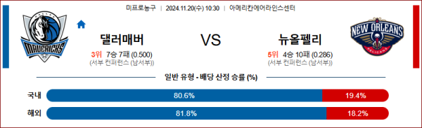 11월 20일 NBA 댈러스 뉴올리언스 미국프로농구분석 스포츠분석