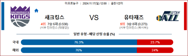 11월 17일 NBA 새크라멘토 유타 미국프로농구분석 스포츠분석