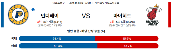 11월 18일(월) 인디애나 마이애미 미프로농구 NBA 07시00분 완벽분석 꿀정보 !!