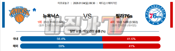 2026-01-04 NBA 뉴욕 닉스 필라델피아 76ERS NBA분석 무료중계 스포츠분석