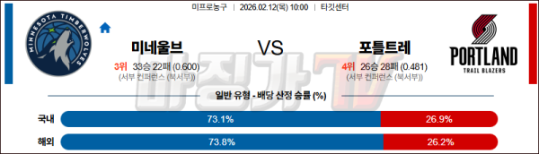 2026-02-12 NBA 미네소타 링스 포틀랜드 트레일블레이저 NBA분석 무료중계 스포츠분석