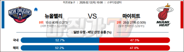 2026-02-12 NBA 뉴올리언스 펠린컨즈 마이애미 히트 NBA분석 무료중계 스포츠분석