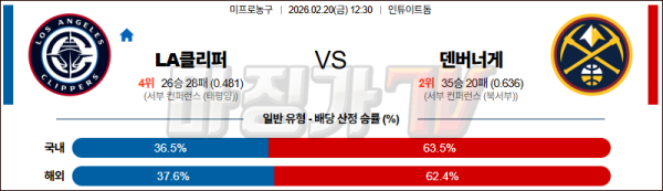 2026-02-20 NBA LA 클리퍼스 덴버 너겟츠 NBA분석 무료중계 스포츠분석