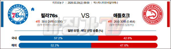 2026-02-20 NBA 필라델피아 76ERS 애틀랜타 호크스 NBA분석 무료중계 스포츠분석