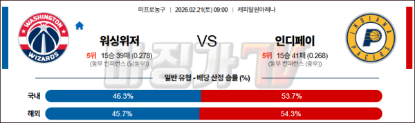 2026-02-21 NBA 워싱턴 위자드 인디애나 페이서스 NBA분석 무료중계 스포츠분석