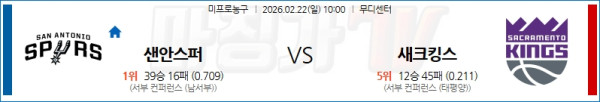 2026-02-22 NBA 샌안토니오 스퍼스 새크라멘토 킹스 NBA분석 무료중계 스포츠분석