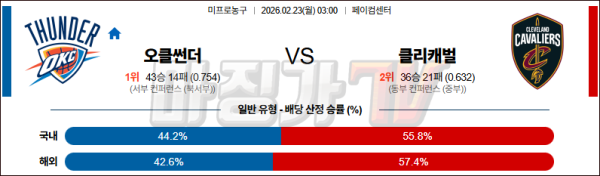 2026-02-23 NBA 오클라호마시티 썬더 클리블랜드 캐벌리어스 NBA분석 무료중계 스포츠분석