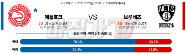 2026-02-23 NBA 애틀랜타 호크스 브루클린 네츠 NBA분석 무료중계 스포츠분석