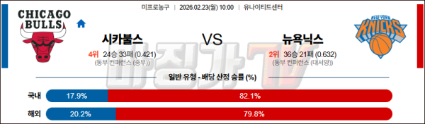2026-02-23 NBA 시카고 불스 뉴욕 닉스 NBA분석 무료중계 스포츠분석