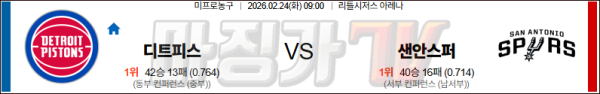 2026-02-24 NBA 디트로이트 피스톤스 샌안토니오 스퍼스 NBA분석 무료중계 스포츠분석