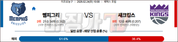 2026-02-24 NBA 멤피스 그리즐리즈 새크라멘토 킹스 NBA분석 무료중계 스포츠분석