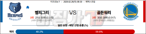 2026-02-26 NBA 멤피스 그리즐리즈 골든스테이트 워리어스 NBA분석 무료중계 스포츠분석