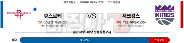 2026-02-26 NBA 휴스턴 로켓츠 새크라멘토 킹스 NBA분석 무료중계 스포츠분석