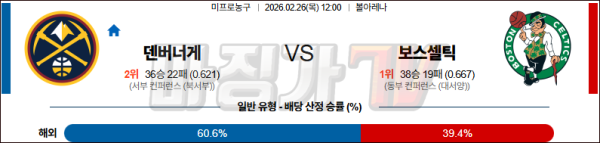 2026-02-26 NBA 덴버 너겟츠 보스턴 셀틱스 NBA분석 무료중계 스포츠분석