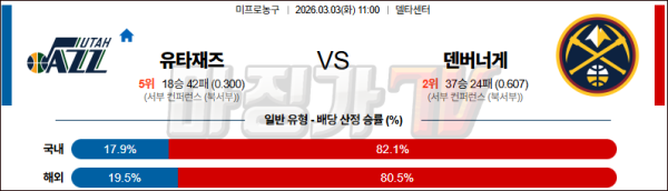 2026-03-03 NBA 유타 재즈 덴버 너겟츠 NBA분석 무료중계 스포츠분석